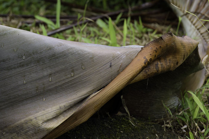 Areca frond. This is a severe crop, so there's a bit of noise. When I was doing the first series, someone asked me why I shot so much vegetation. The answer is simple: in this yard, there's a lot of it, and to me it always takes interesting forms. Sure, I'll be shooting the odd flower, but what interests me about the plants here are shapes. To tell the truth, I was after a different image of this frond, and I liked the way it looked. But I'd gone outside without my tripod and the result was that the focus plane wasn't where I thought it was (I have a new camera body and have not set the eyepiece diopter yet, and without the tripod I couldn't easily use Live View). So I didn't like the entire image technically although I really liked it as a composition. Zooming in with Lightroom to check focus, I saw this shape and liked it and that was that. Want something technical? This is 1:1. Indeed my camera has a great sensor and the lens is pretty good too. Sometimes first-rate equipment can let you pull a nice image from a botched one.