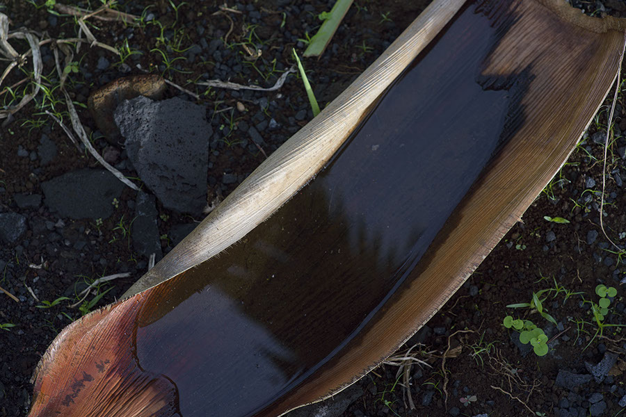 This is part of a frond that fell from a volunteer palm that I think might be a betel palm. I have several of those, all planted in honor of Nagovisi friends who have died. The one that dropped this frond got started when we were on the Mainland. I was going to take it out, thinking it was an ordinary Areca (and we have plenty of those) but it's looking more and more like betel, so it's going to stay.