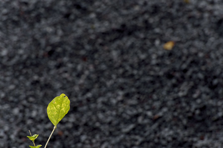 I looked down into the zen garden and there was a nicely-lit pikake leaf against the dark gravel, and a dead leaf gave me another bit of color along the diagonal. I don't think I want to look back over this month's images and tally the number that have strong diagonals. It must be high.