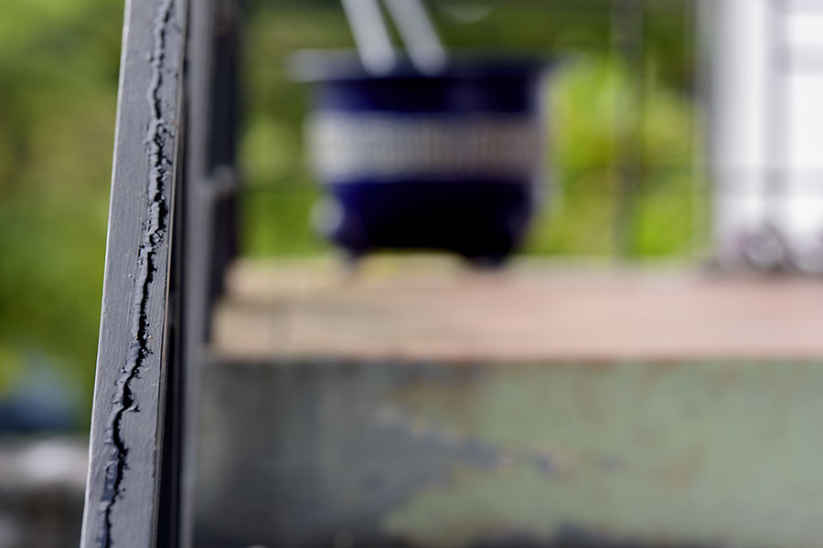 It's just water that dripped from the gutter and is running down the railing. Slowly.