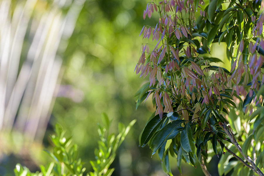 New leaves on the lychee. It's responding well to pruning and fertilizer. Unfortunately, lychee season isn't for months. But we're hopeful, even though this lychee has never given us any fruit.