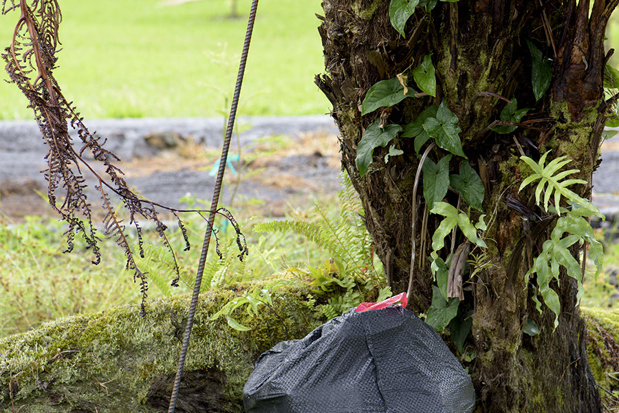 Story of the last couple of weeks. Rebar and garbage bag (filled with concrete bags), anyway. In the background is the driveway I've been building since last December. Probably next week I'll finally get it filled with gravel. Probably.