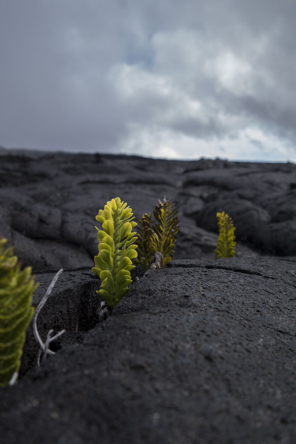 This is the 1984 Mauna Loa flow that came within a few miles of the house, before stopping. The picture was made at about 8000' (2400 metres) elevation. There's more vegetation on the flow at lower altitudes. Give it another century and we'll probably have a thin forest here -- unless, of course, Mauna Loa sends another flow over this one.