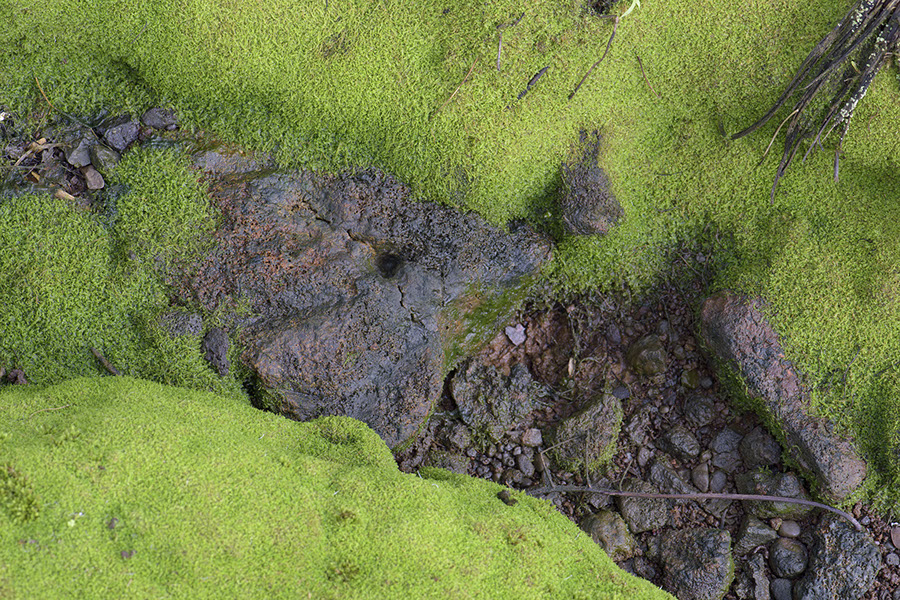 There's a kind of moss that likes hapu'u and likes to grow on exposed roots, and on rocks. That's what you're seeing here, along with part of the drainage ditch. I made another moss-ditch shot this morning that I really liked. In the end I chose this one.