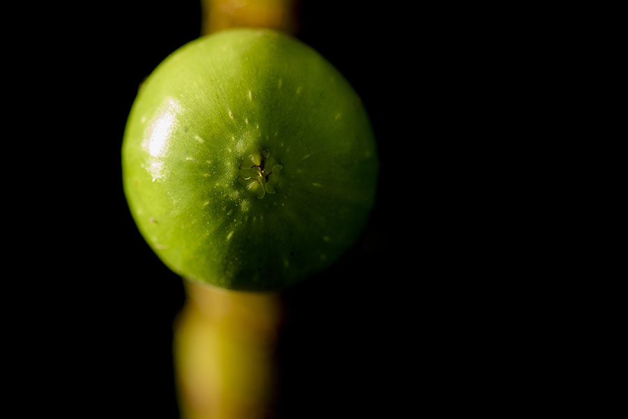 So in the spirit of round things against dark backgrounds, here's an end-on, unripe, breast-like fig.