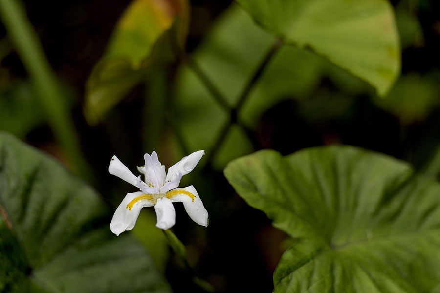 Here's the first blossom of the irises' new life in the sun. Of course I speak generally. I don't think the irises or the taro or any of us are going to see much sun for a few days.
