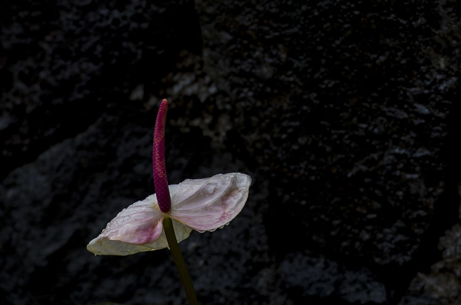 Raining. Dull light. White anthurium, black lava. What's to say?