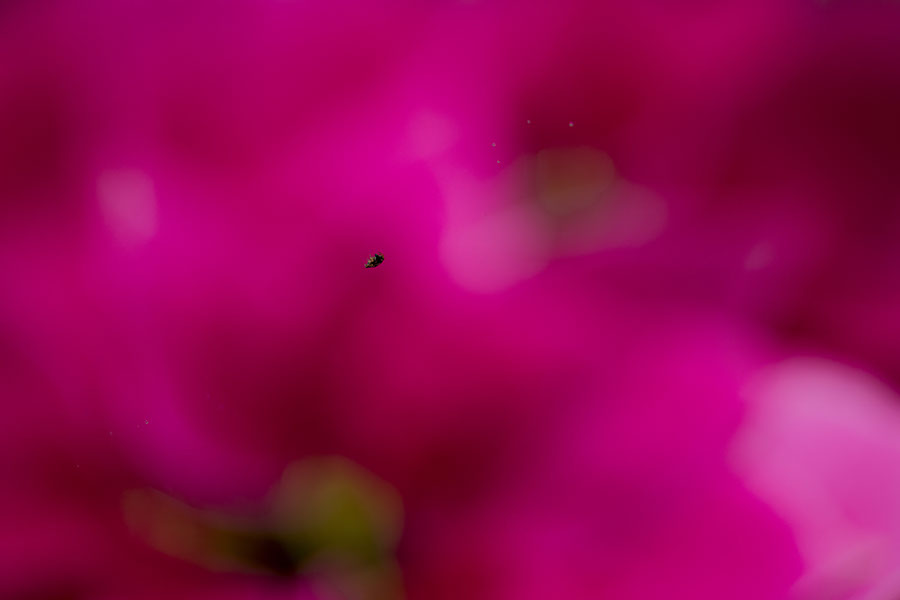 There was a breeze and I couldn't focus manually on the moving spider. I cranked ISO up to 400 so (coincidentally) I could shoot at 1/400 . . . and autofocus nailed the moving spider. Often I feel as though autofocus in Live View lets me down, but today it did its job perfectly.