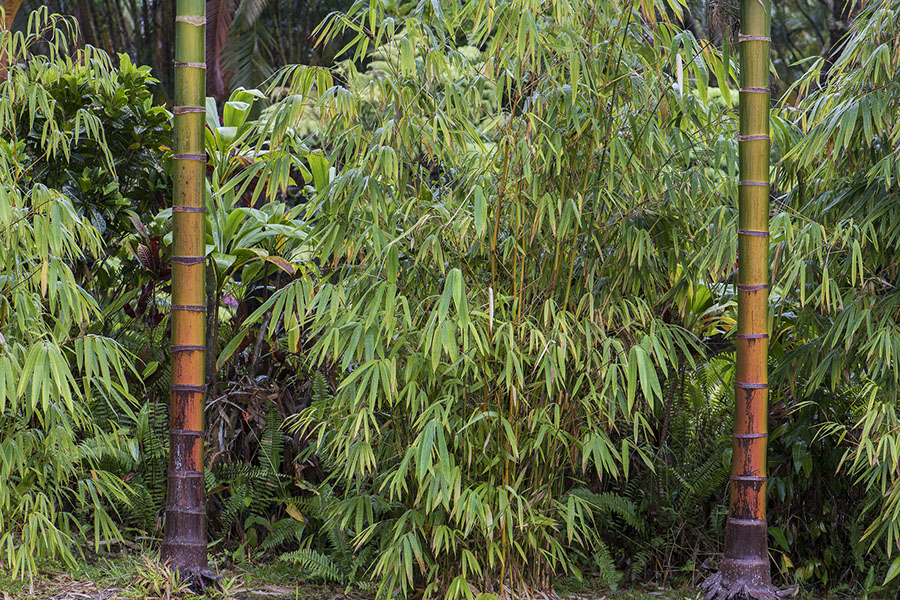 Wet morning. I've been admiring the oranges and greens on the betel palms, but instead of getting close I decided to stay away and get two of them.