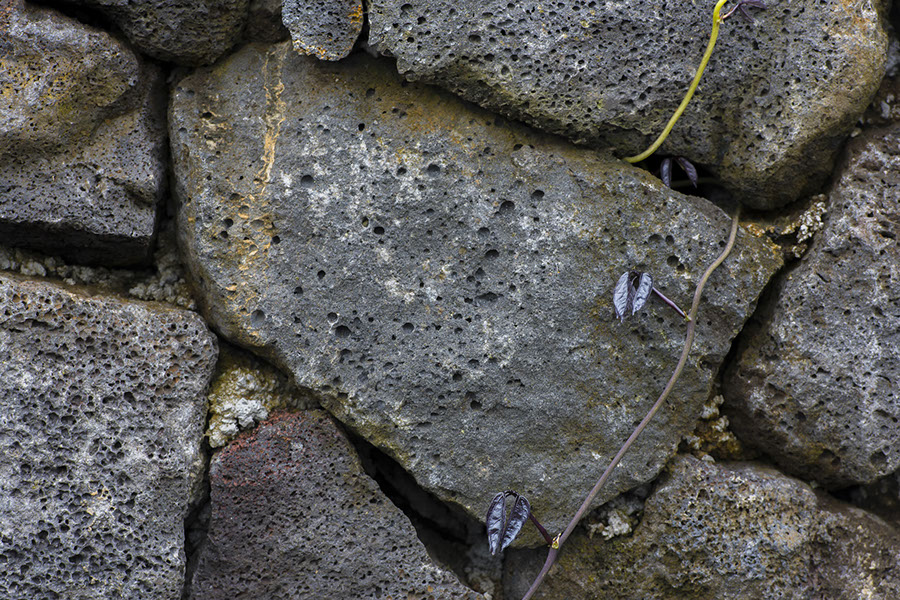 So here's Blue Jade on mostly-black lava. One green tendril. I like the little pair hiding in the crevice.