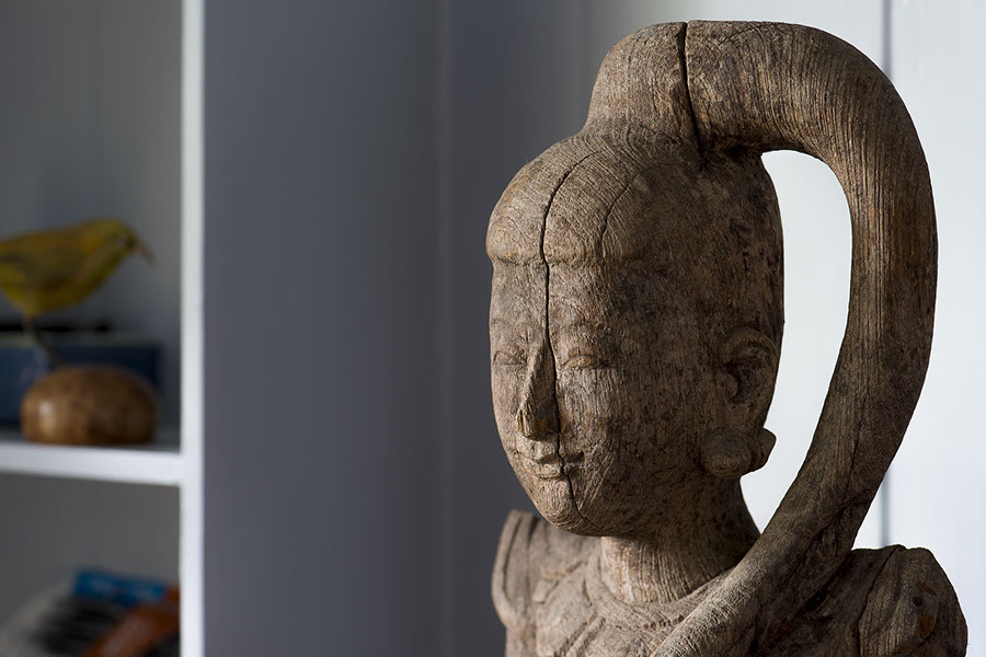 It's raining and chilly in Hilo today, so I stayed inside. I've been meaning to see what I could do with this wonderful Burmese statue that came from Kathmandu Trading Company. She's known by various names, one of which is Phra Mae Thorani. Although I've given you the link, I'll quote from it (you can get the reference from the link):