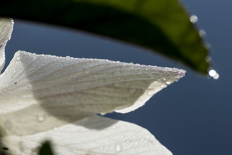 Then the sun came out and backlit the white hibiscus by the steps. So I made a flower image that seemed to me an image involving a flower rather than a Flower Image. Splitting hairs, probably, but here it is.
