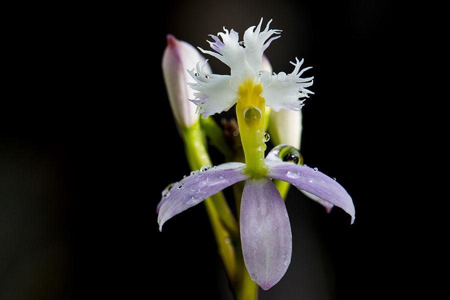There was a brief period of sun. I was outside looking around and almost overlooked this tiny little orchid. It seemed like a happy orchid to me and I loved the colors.
