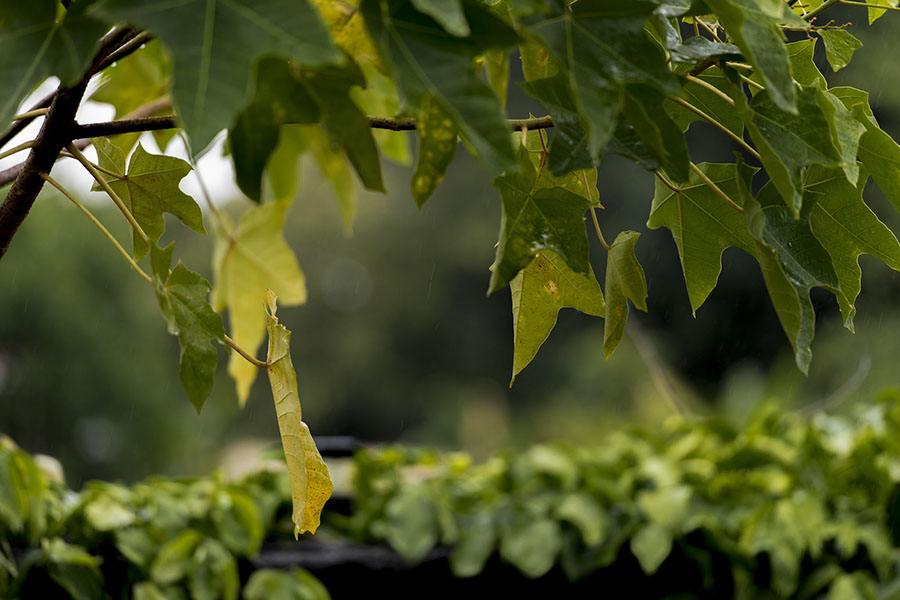 Here's a shot in which the dying kukui leaf adds more interest than the green living ones do. I thought that from the side it made an interesting image.