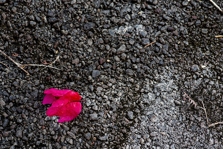 Bougainvillea on the driveway. I liked the lower part -- the way it's varigated. Also, there's an ant. I don't think I've delivered insect images for a while.
