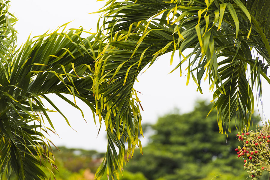 Palms being friendly. I liked the arcs and the yellow contrasting with the green. A cardinal was flying around but didn't light anywhere in my frame -- I was hoping for another red, to go with the nuts. Not today.