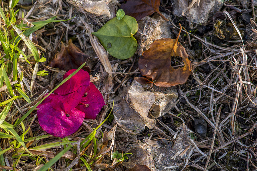 How about a range of colors for today? Also, a fresh Bougainvillea bract next to some dessicated ones? The fine tracery in both caught my eye.