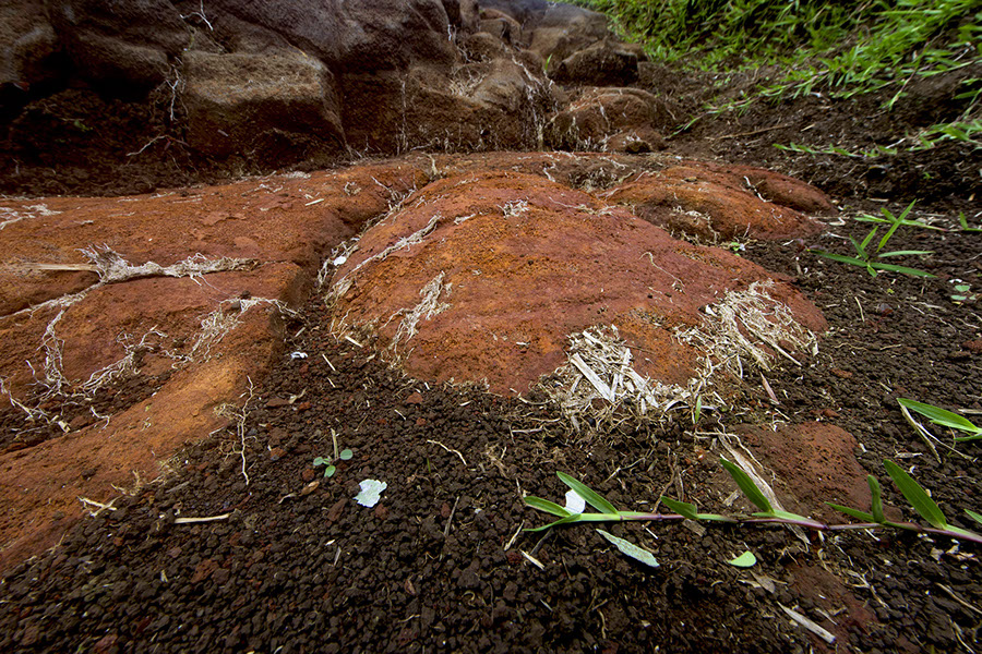 Lava, aggressive grass, and a paint flake from when the chimney was pressure-washed. I'm going to fill this area with gravel, even though I like the red lava (which will turn black within the year).
