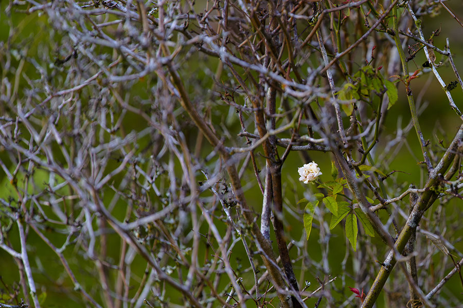 It's not the last rose of summer, and I hope it's not the last rose from this bush that my mother planted many years ago. It hadn't had any care for a long time -- covered with other vegetation -- until I moved it four or five years ago. After that, I confess it hasn't had the care it deserves, but it's hanging on. Ruth isn't sure it can be saved, but I'm unwilling to let it go.