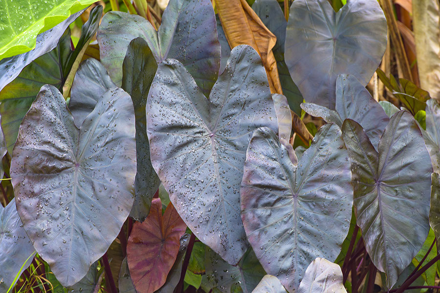 Ornamental taro, in the back corner. I liked the steely-gray blue tones mixed with the bright green and then that little umber one in the back.