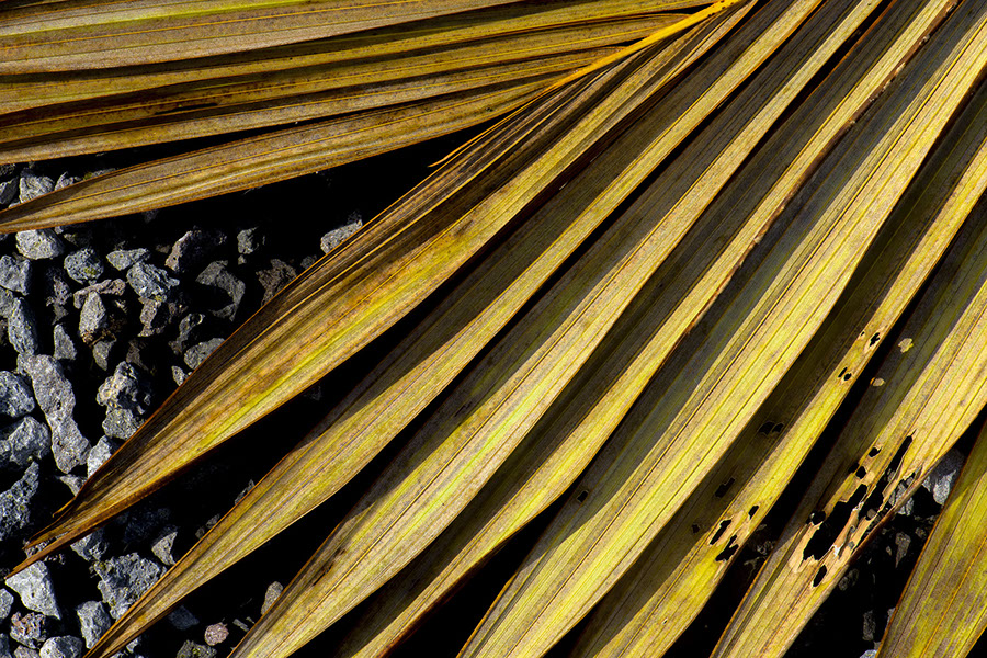 I liked the way the morning sun made shadows and lit up what was left of the frond's colors.