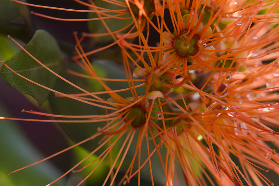Having spent yesterday with both dying 'ohi'a (killed by the lava) and red-orange lava, composing a happily-alive orange 'ohi'a shot seemed like the right thing.