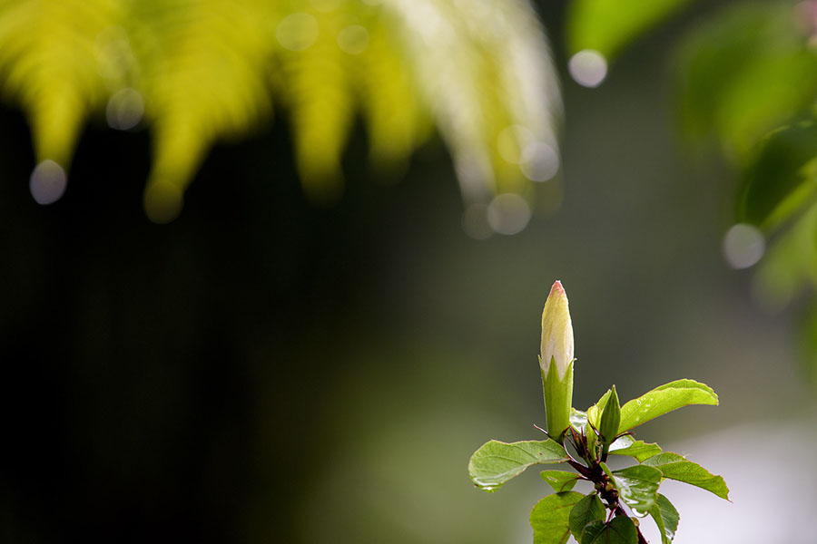 I noticed this white hibiscus bud pointing straight up, which is unusual.