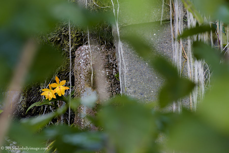 I thought I'd try framing them with hibiscus leaves. It was dull with light showers, but the strong color came through.