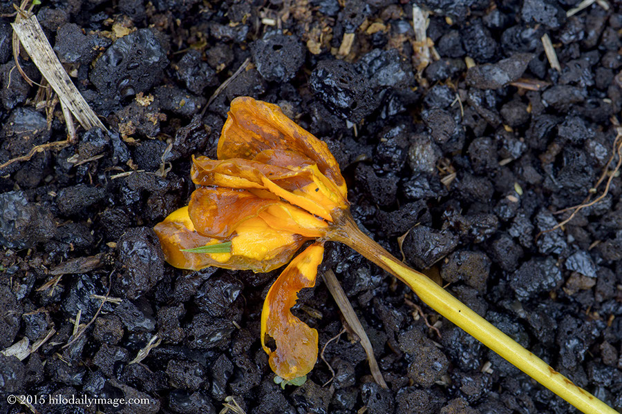 Yesterday I noticed that the Kula gardenia bush had been dropping blossoms onto the cinders surrounding it.