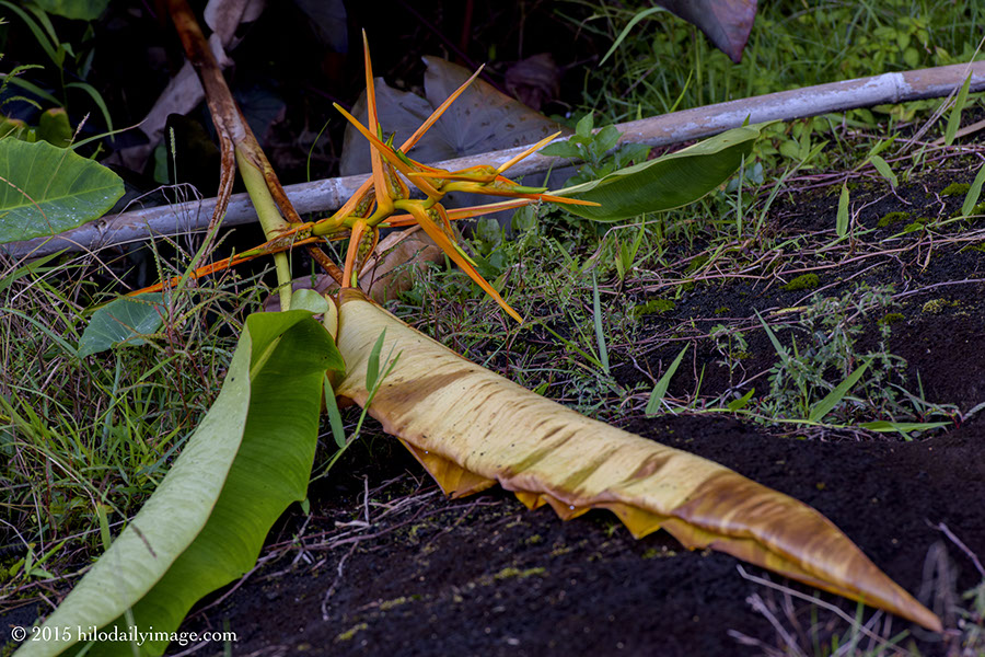 Out in the back, a fallen Heliconia flower. Actually it might well have another name. "Blossom" doesn't seem to fit.
