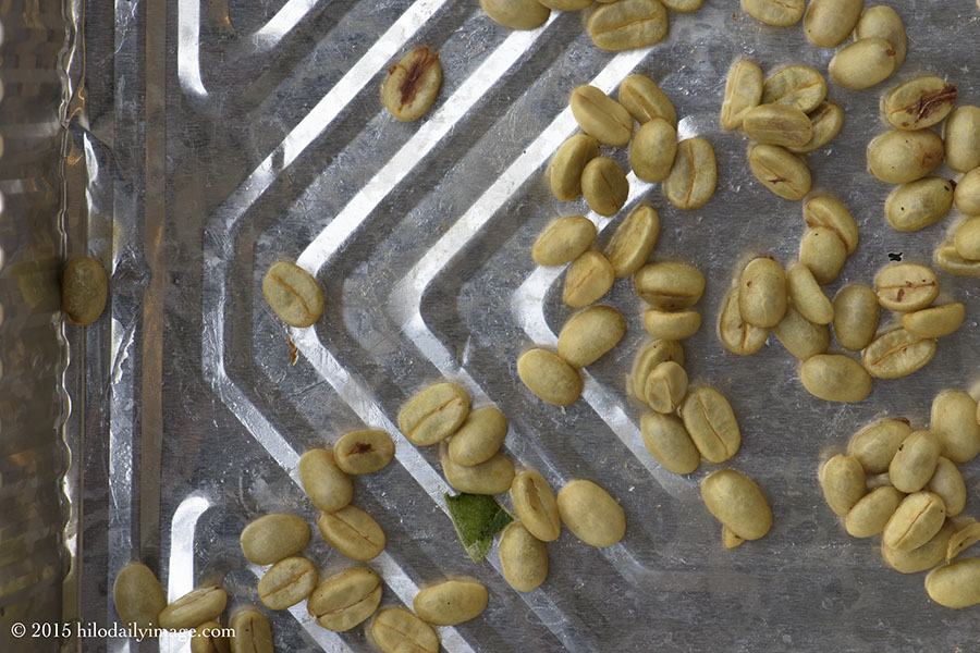 I've given you our red, green, and black coffee beans on coffee trees. The beans eventually fall off and decompose. Not long ago, we had a Kona coffee farming family at the house and the suggestion that we not waste the beans was gracefully made. Message received! So we're going to start picking, drying, and home-roasting our own coffee. With only two trees it's going to take a while to get enough for a pot of coffee, but it's going to happen.
