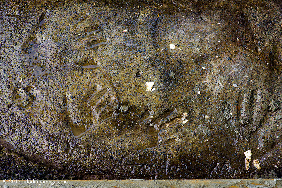 Today would have been my father Glenn's 107th birthday (he died in 1989, at only 80), and so I thought it would be appropriate to go out to where, on the 20th of some month in 1947 (as you can see in the upper right), he laid a concrete pad and we all made impressions of our hands in it. Joe the dog is there too. I would have been 4.