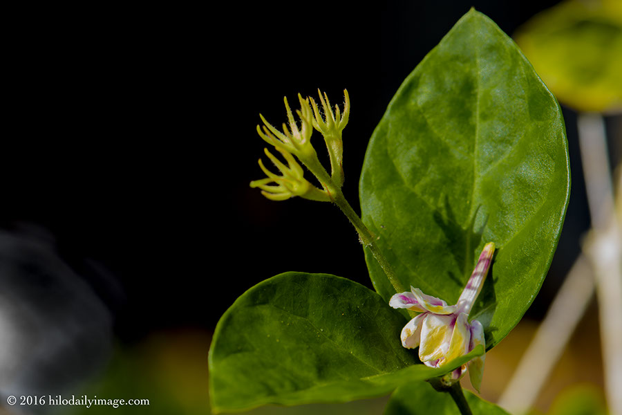 Pikake bush, Day Five. The same part of the pikake as yesterday, shot from the other side.
