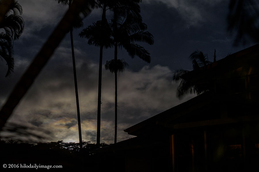 I noticed the moon going down, but didn't get outside before its disk went behind the tree. But it was fun to not see colors with the naked eye, but find them in the image. And visible stars were another bonus.