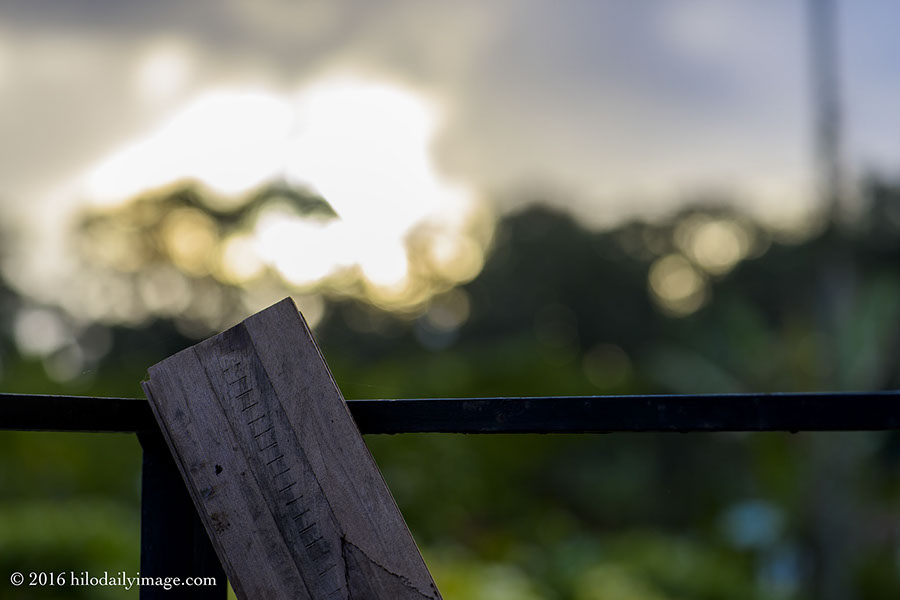 But because I don't think very fast, a couple of pieces have been leaning against the front porch railing for a week or more. When I went out this morning to see what I could see, I noticed that the rising sun was behind some trees and I could place that behind one of the planks. So I did, and experimented with aperture to get the effect I wanted, and that's what you get this morning.