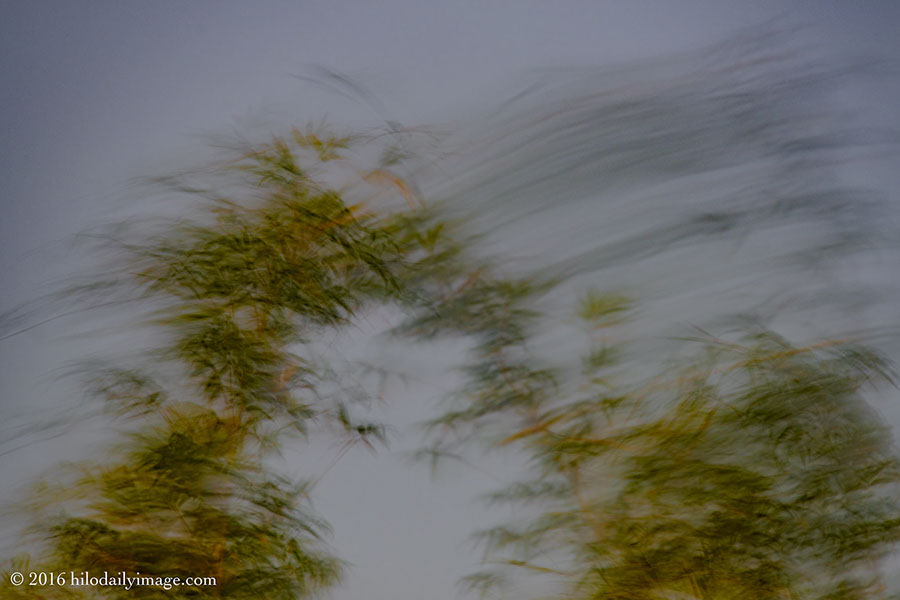 Sometimes I pay attention to whether I'm making the HDI on a holiday or other special day. Today I really wasn't -- but when I went to see what I had to work with, I noticed the bamboo on the mauka side of the house being whipped about by the wind. And I always like wind-whipped whatever.