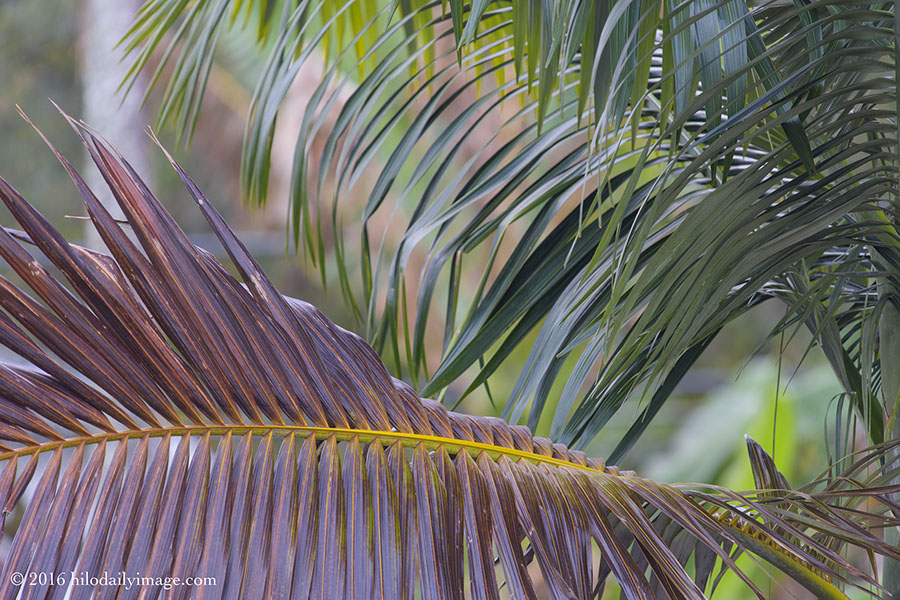 There's no leap year significance to this one. I noticed a dying frond on the small Areca, and liked its combination of brown and yellow. That's it.