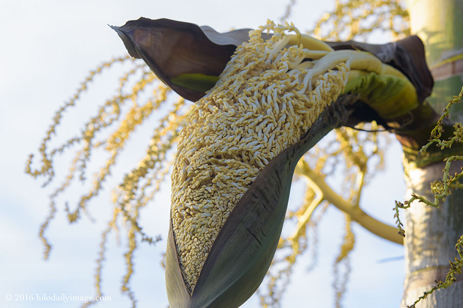 Areca seed spray just about to bust out. Backlit, so I let the sky go.