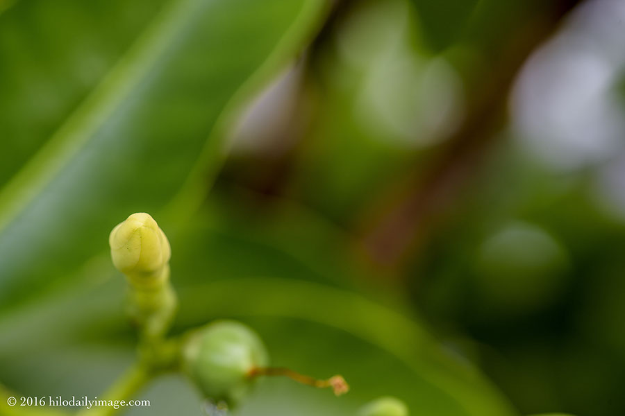 Pua kenikeni blossom not quite ready to unfurl. I thought the out-of-focus background worked well.