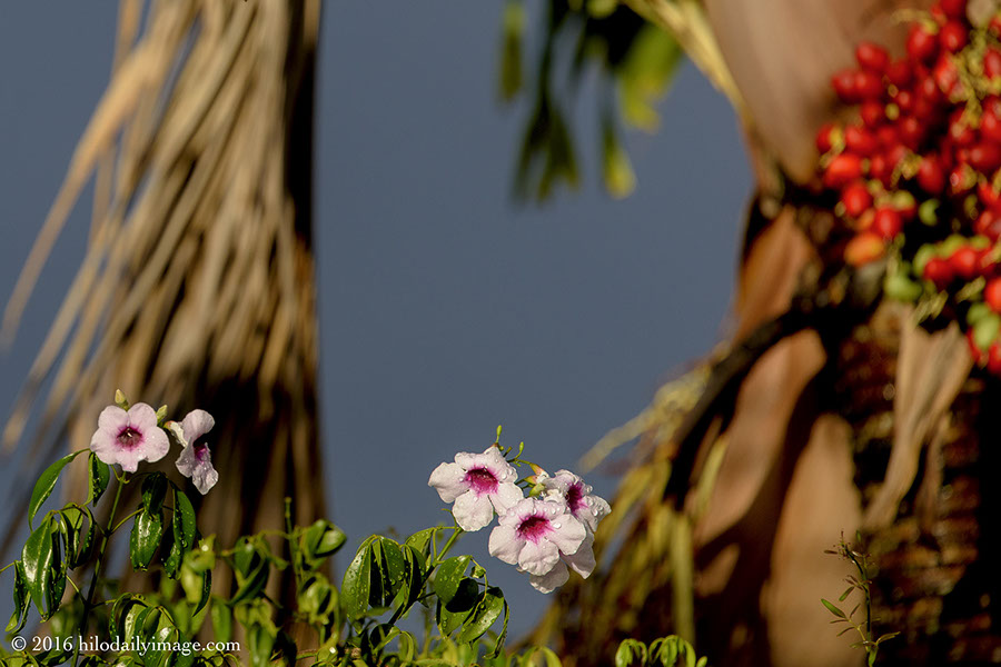 The Stefanotis is blooming, and I caught these clusters in the early sunlight.