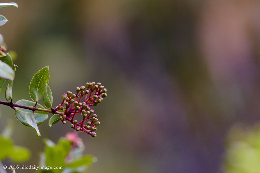 I noticed that some of the orange 'ohi'a buds were oriented sideways (from my viewpoint), and having been pleased by a sideways white hibiscus yesterday, I decided to do a sideways orange 'ohi'a today.