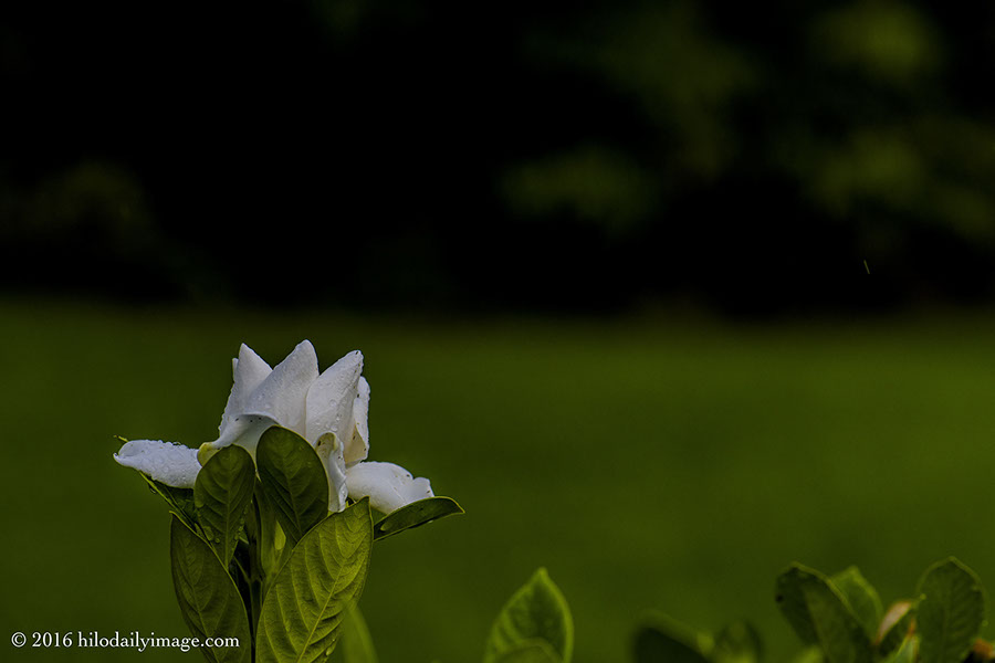 I don't remember ever shooting a gardenia from this angle. The light this morning was odd. I'm not crazy about the dark greens in this one, but I do like the contrast.