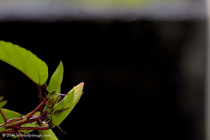 I don't think I've shot a white hibiscus bud so early in its development. I was attracted to that little tiny bit of pink at the tip. There are actually 3 more buds at even earlier stages showing here.