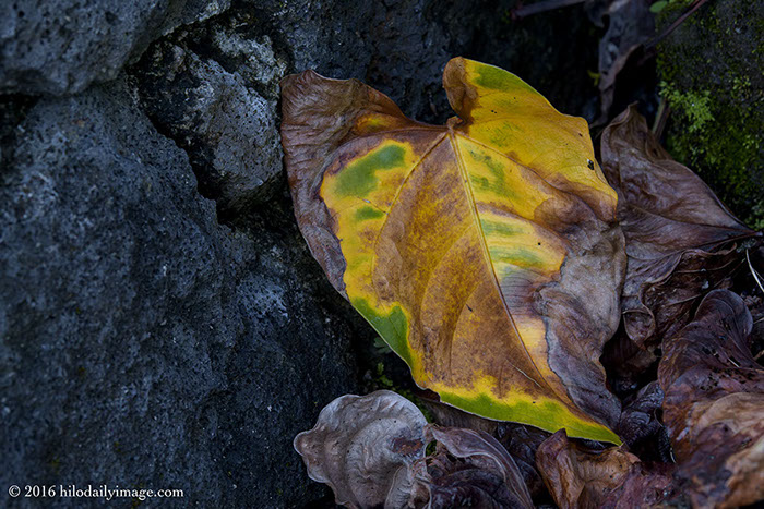 This morning I was reminded of why I like to shoot before the sun's fully up. With no direct sunlight, colors can be vibrant but they aren't harsh and contrasty. This anthurium leaf's colors were able to be themselves, and the browns and grays in the other leaves (particularly the one at the bottom center) stayed subtle. Much of this would have been lost had this shot been in direct sunlight.