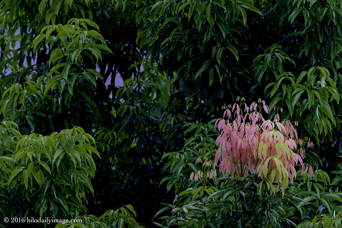 I can't tell you how many times I've looked at new leaves on the lichee and thought about how to use them together with the rest of the tree. This morning seemed like a good time. They certainly do stand out.