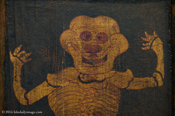 Yeah, it's not Halloween just yet. Early, no light, rain, got to get on the road . . . so I stayed inside for this one. This is detail from a 19th or maybe 18th century Tibetan monk's door. Tomorrow, maybe more of the same.