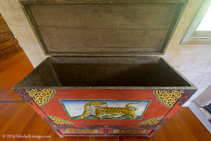 The Tiger Chest, prepped for some dead storage. We display it as art, but it's going to store the heavy winter clothes, to be taken out only for winter trips to the Mainland or for Mauna Kea when it's seriously bad up there. Considering that it was made and used in Tibet originally, that seems appropriate.