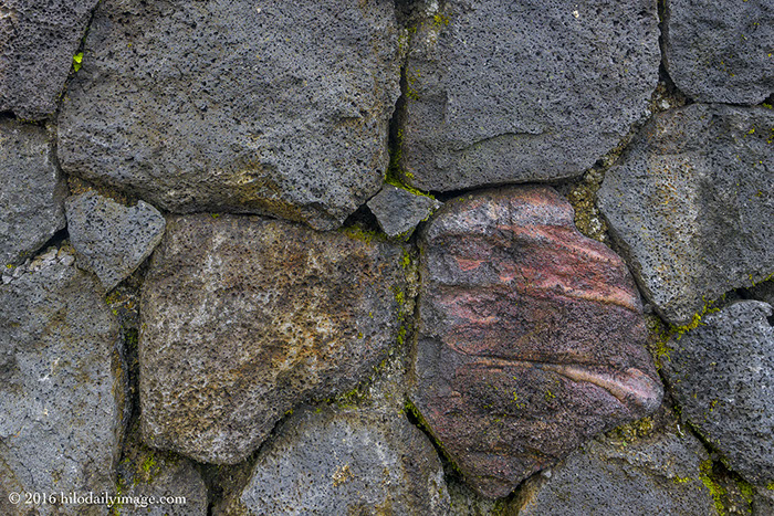 There's more color hiding in a rock wall than you might think. A superwide isn't the best lens for flat surfaces, but I was outside with it already (seeing what I could do with the breadfruit tree, which was nothing interesting) so I stopped by the wall on the way back in. Very flat light this morning. Note after exporting the site: I never inspect the "One year ago" and "Two years ago" links before shooting. Interestingly, today's "One year ago" shot includes the same portion of the rock wall shot with the superwide (but farther back, and including much more). Check it out.