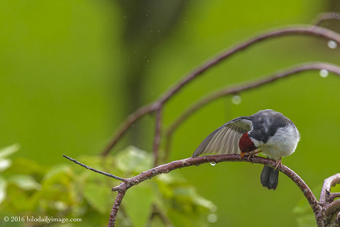 Rainy, dull, windy. I was looking for something seasonal, and not finding much from the porch. Then this redcap flew into the kukui tree and stayed there long enough for me to go inside and mount the 300mm lens and get back out. We're headed for Mauna Kea, where it may be windy, but it's not going to be rainy and dull. It'll be cold, though, but that's OK.