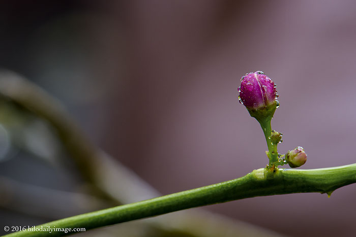 The Meyer lemon in the Zen garden has both mature lemons and buds at the same time. I don't think it's done that before. I liked the water drops on the large one but I liked the drops on the small one below it even more.